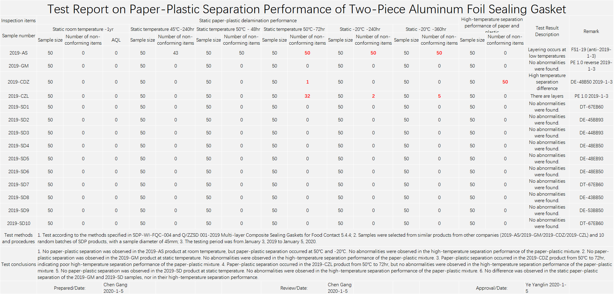 II. Shengding Products: Shengding products do not delaminate (paper-aluminum-plastic separation) during long-term storage at -20~+40℃ and after 240 hours at +50℃.