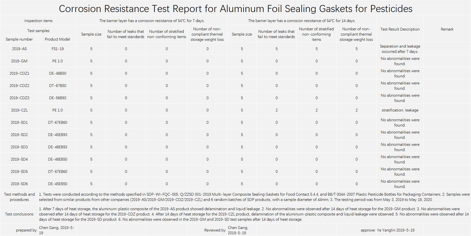 I. Industry Status: Some domestically produced aluminum foil sealing gaskets cause leakage at the bottle opening after pesticide packaging.